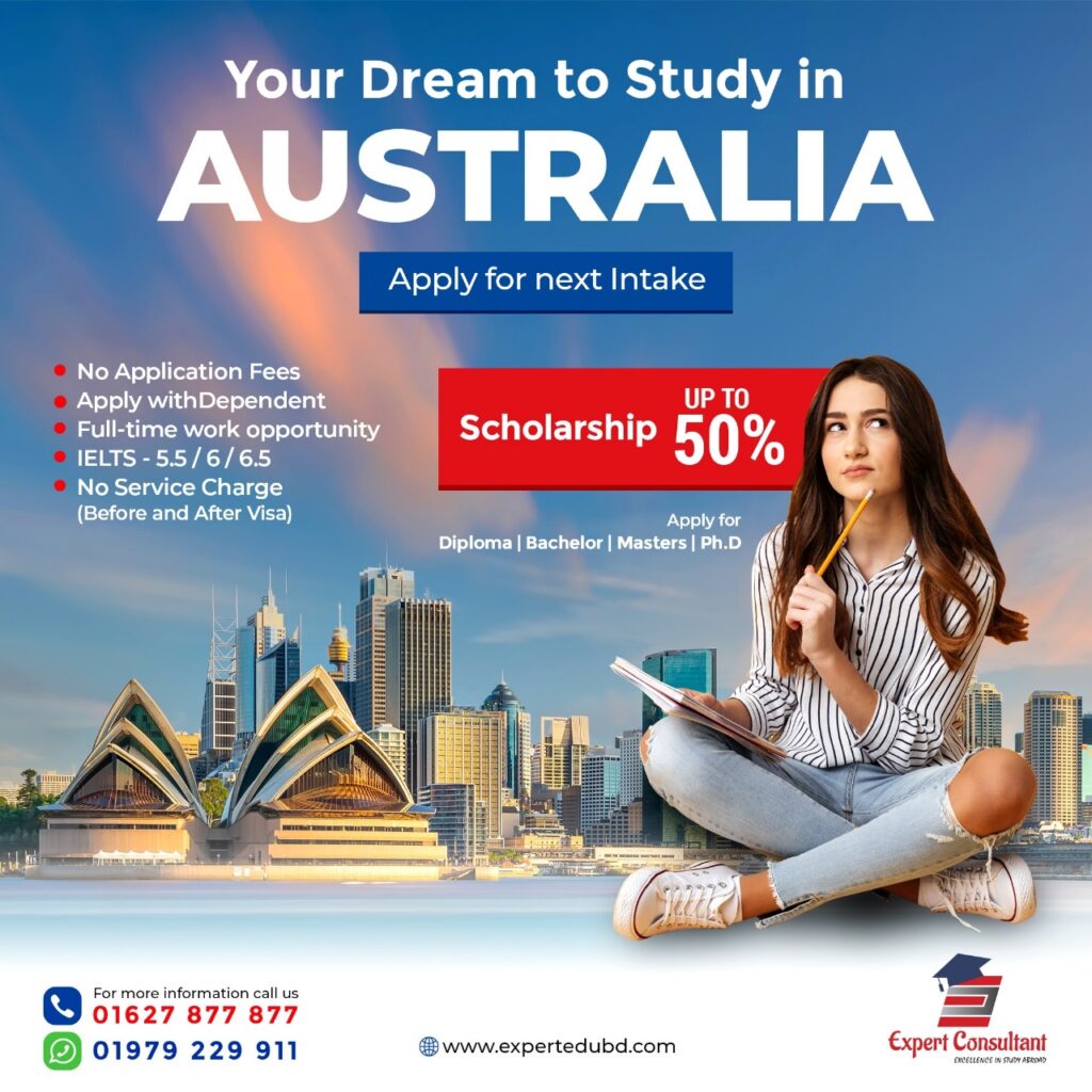 ☑️ Scholarship up to 50 % ☑️ Requirements 🔴IELTS 5.5 /6/6.5 can apply 🔴 PTE score also acceptable for bachelor & masters program ☑️Why Expert Consultant ? 🔴 No service charge before and after visa 🔴Apply with dependent 🔴Visa ration still 100% 🔴Admission within 72 Hours 🔴 Full time work opportunity 🔴A-Z Support